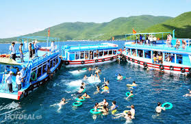 TOUR THAM QUAN 4 ĐẢO NHA TRANG ( GHÉP KHÁCH ) GIÁ VÉ 200.000 VND/VÉ. 07h30: Quý khách tự dùng điểm tâm sáng, cafe. 08h30 Xe cty đón quý khách tại khách sạn,hay điểm hẹn…đến Cảng Cầu Đá lên du thuyền tham quan 4 đảo Vịnh Nha Trang. HÒN MUN (MunIsland ) HÒN MỘT (MộtIsland ) BÃI TRANH (TranhBeach ) THỦY CUNG TRÍ NGUYÊN ( Tri Nguyen Aquarium ) 08h45 Xe đưa đoàn đến bến tàu, quý khách lên du thyền tham quan đảo. 09h00 Đến Hòn Mun. Khu bảo tồn sinh thái biển, quý khách bơi lăn, trực tiếp ngắm nhìn những mãng san hô và các loài sinh vật quý hiếm của biển. tại đây phục vụ phao bơi, kính lặn, ống thở, cho quý khách tham quan tắm biển, Snorkeling. và tham gia các trò chơi thể thao biển… Ngoài ra quý khách có nhu cầu lặn tham quan Đại Dương bằng bình khí, dưới độ sâu 10m - 15 m và chụp hình lưu niệm… Phí lặn biển bằng bình khí : ( Phục vụ đặt trước, phí tự túc ) Lặn lần 1 giá: 550.000vnđ/ kh. Lặn lần 2 giá: 400.000vnđ /kh Chụp hình ghi ra đĩa: 250.000vnđ/ 1 lần Tham quan Đại Dương bằng tàu đáy kính giá : 60.000vnđ/ vé 11h00 Đến Hòn Một, dùng cơm trưa trên tàu. Tham gia chương trình nhạc sống hát cho nhau nghe. Thưởng thức tiệc Bar rượu nổi trên biển và tiệc hải sản nướng BBQ, trên tàu. ( Phụ vụ set Menu đặt trước ) 14h45 Đến Bãi Tranh Quý khách giải trí nghỉ ngơi tại đảo du lịch nổi tiếng tại Nha Trang và dự tiệc trái cây. 16h00 Đến Thủy Cung Trí Nguyên Quý khách tham quan ngắm sinh vật trong thủy cung, khám phá sự đa dạng của hàng trăm loài cá. 16h30 Kết thúc chuyến du ngoạn và đưa Qúy khách về lại khách sạn.